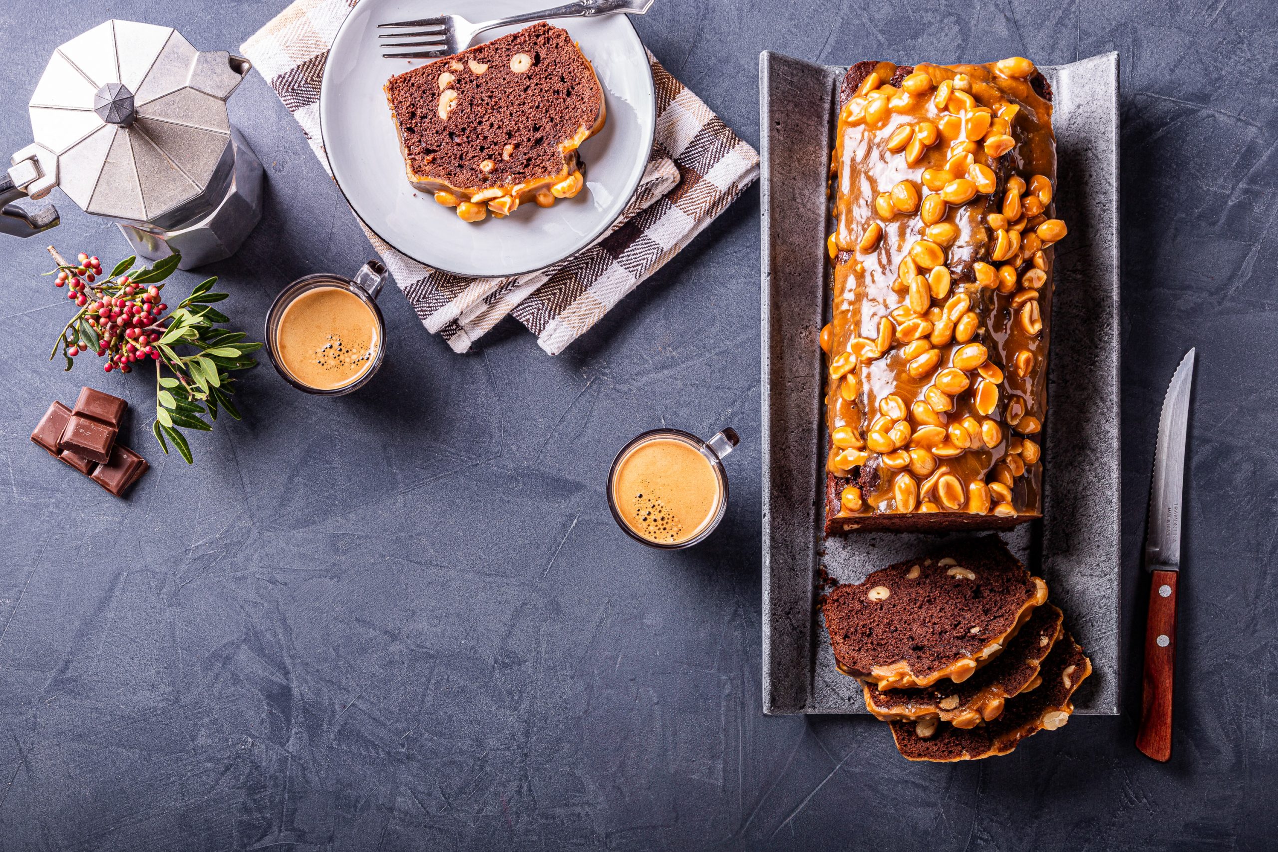 Χτυπάμε το βούτυρο με τη ζάχαρη μέχρι να αφρατέψουν. Προσθέτουμε σταδιακά τα αυγά και συνεχίζουμε το χτύπημα. Ρίχνουμε το γάλα και ανακατεύουμε. Κοσκινίζουμε το αλεύρι, το κακάο, το μπέικιν και το αλάτι και τα προσθέτουμε στο μείγμα. Ανακατεύουμε απαλά μέχρι να ομογενοποιηθεί. Προσθέτουμε τα peanuts και τα ενσωματώνουμε. Αδειάζουμε το μείγμα σε βουτυρωμένη φόρμα και ψήνουμε στους 170°C για 45–50 λεπτά.