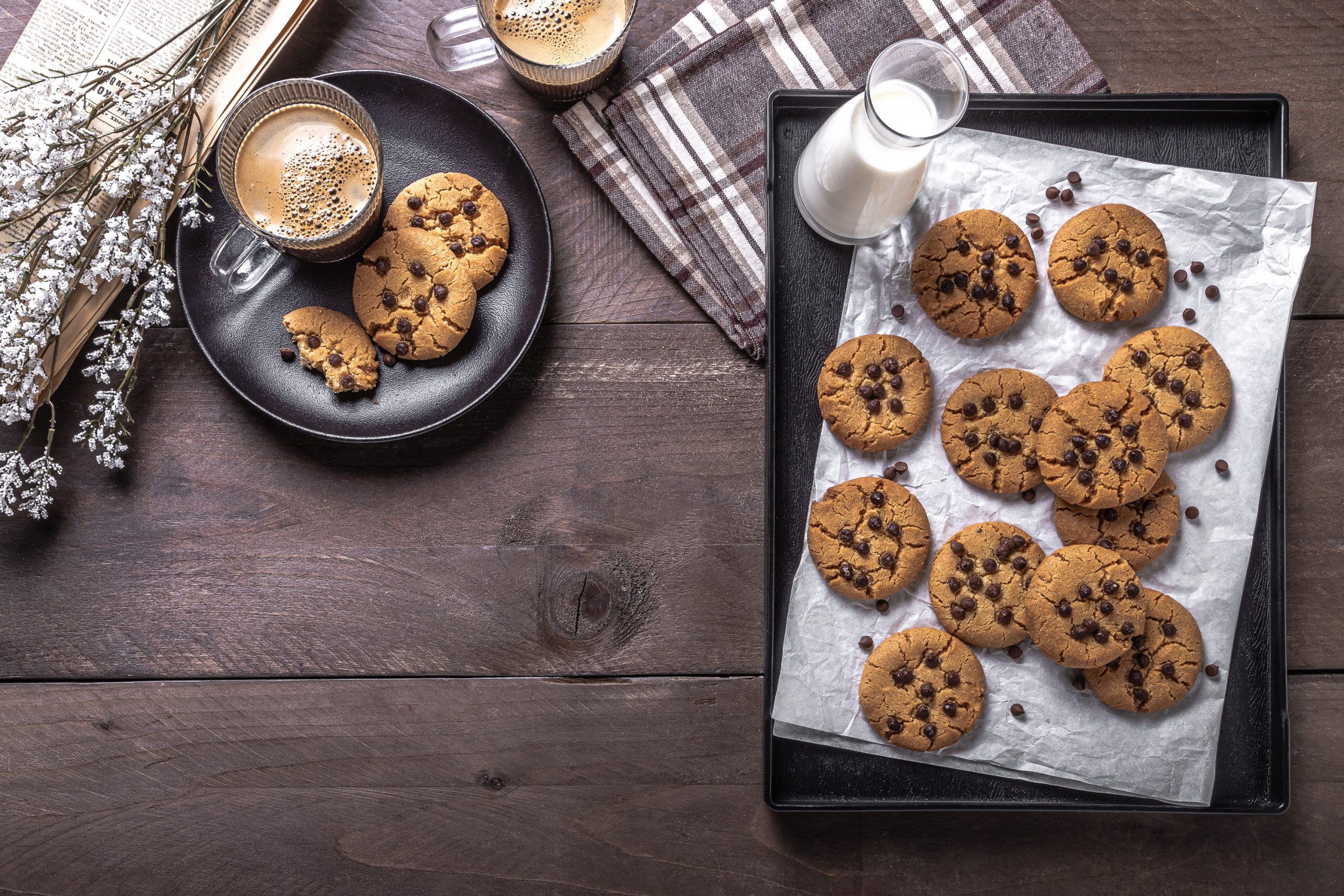 Χτυπάμε το βούτυρο με τη μαύρη και τη λευκή ζάχαρη μέχρι να αφρατέψουν. Προσθέτουμε τα αυγά και συνεχίζουμε το χτύπημα. Ενσωματώνουμε το αλεύρι, τη σόδα και το αλάτι. Σχηματίζουμε μπάλες 30 γρ., τις τοποθετούμε σε ταψί και πιέζουμε ελαφρά. Προσθέτουμε τις σταγόνες σοκολάτας. Ψήνουμε στους 160°C για 10–12 λεπτά. Αφήνουμε να κρυώσουν σε σχάρα.
